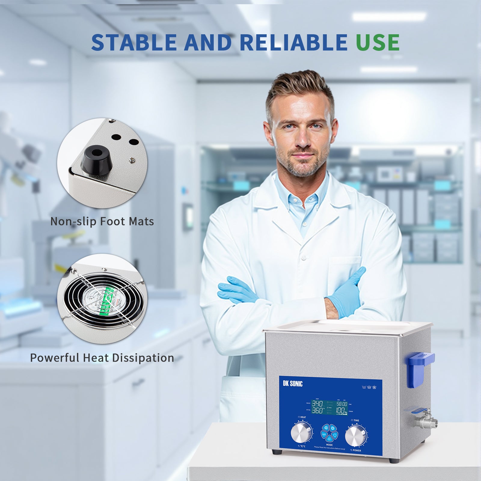 DK SONIC Ultrasonic Cleaner 10L 240W, Ultrasonic Carburetors Cleaner with Intelligent Mechanical Timer, Heater &Power Adjustable Function for Carburettors, Motorbike Engines, Chains