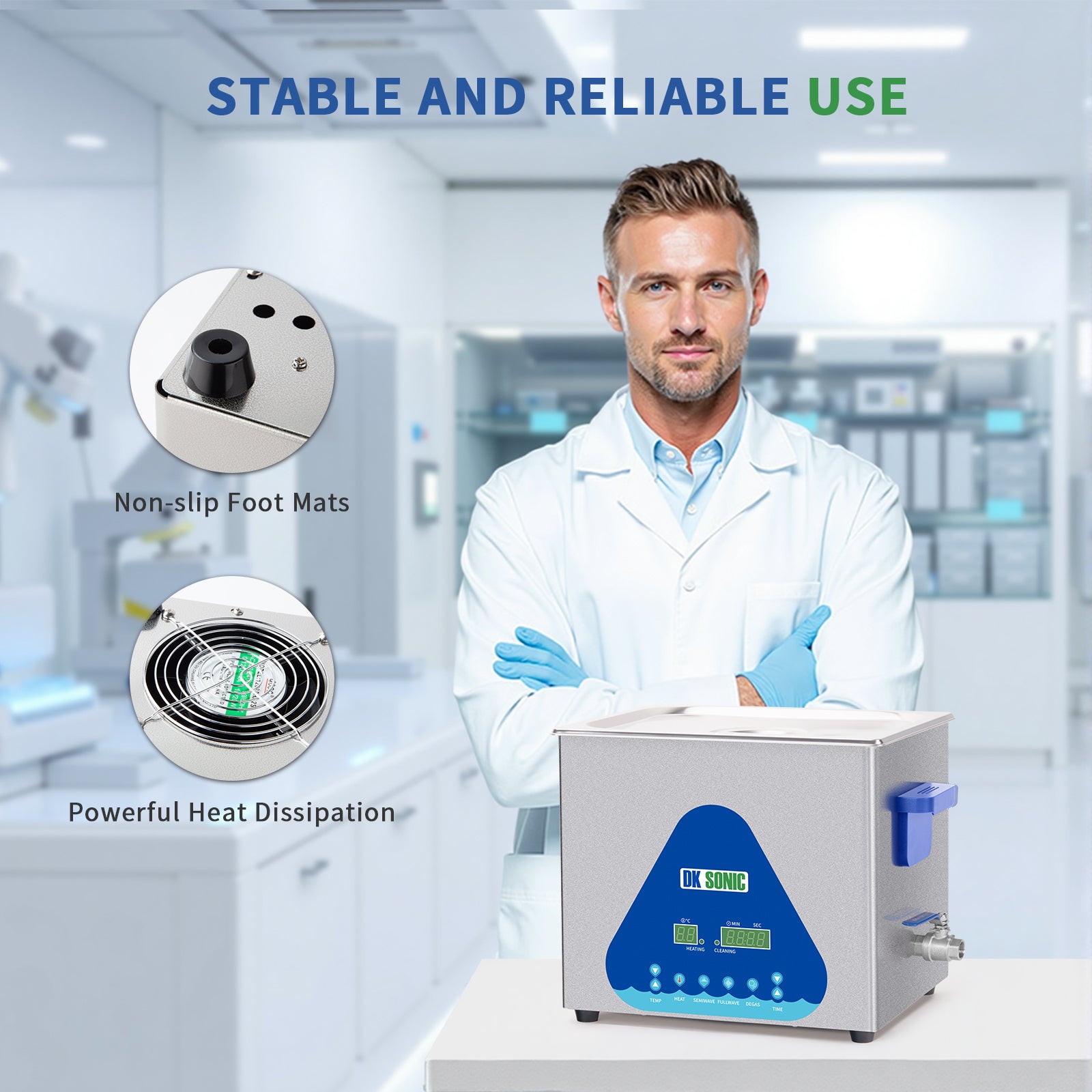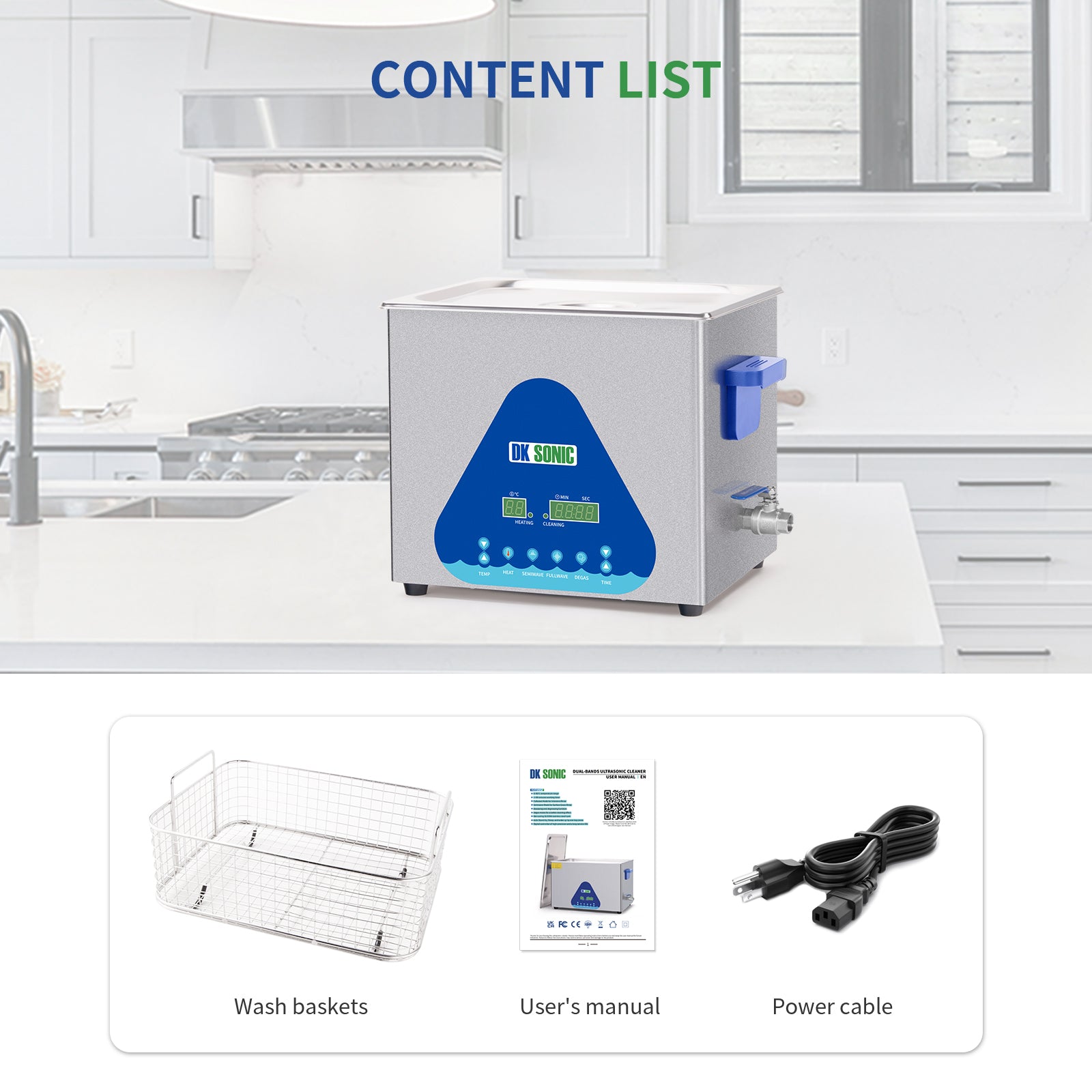 FULLWAVE mode(40KHz) for intensive rinse of blind holes or complicated surfaces; SEMIWAVE mode (semiwave based on 40KHz, i.e. 33KHz) for rough surface cleaning; DEGAS mode for removing ultrasonic fatigue so as to improve cleaning effect; PULSE mode for dynamic rinse of stubborn stains