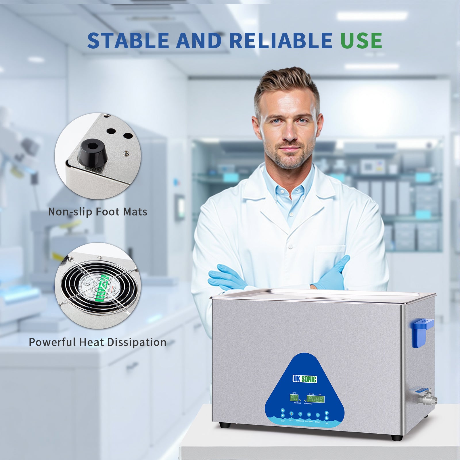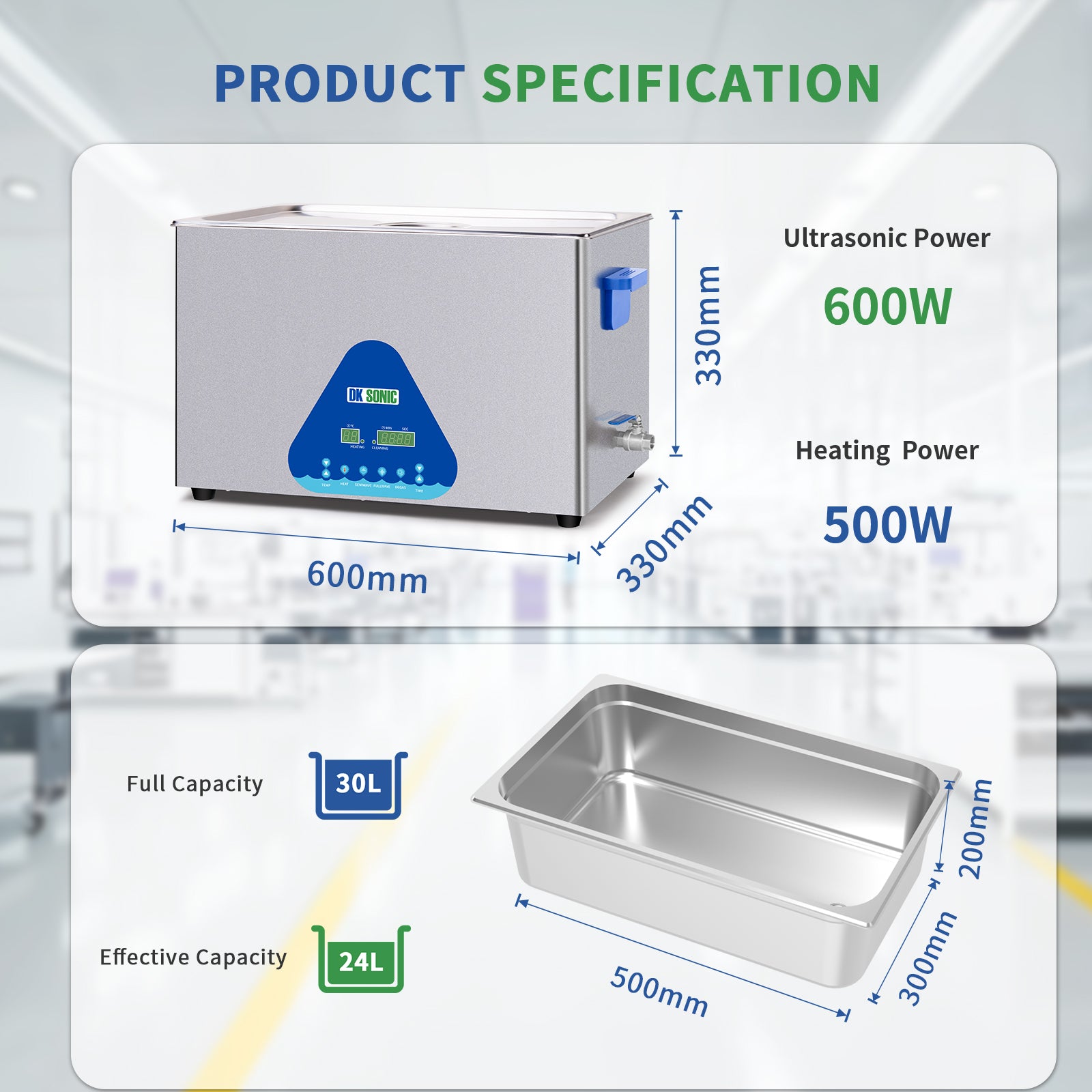 DK SONIC Limpiador Ultrasónico 30L, Limpiador Piezas Ultrasónico de 600W con Calentador y Temporizador, Control Digital y Cesta, Múltiples Funciones para Motores de Motocicletas, Carburadores, Cadenas