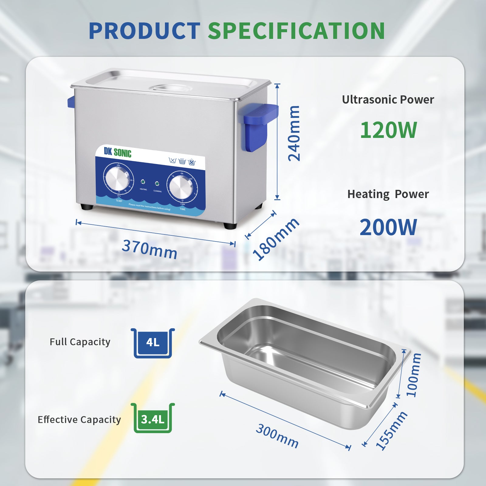 DK SONIC Limpiador Ultrasónico, Limpiador Ultrasónico de Joyas de Acero Inoxidable de 4L 120W con Calentador y Temporizador Mecánico para Lmpiar Joyas, Anteojos, Monedas (Cesta Incluida)