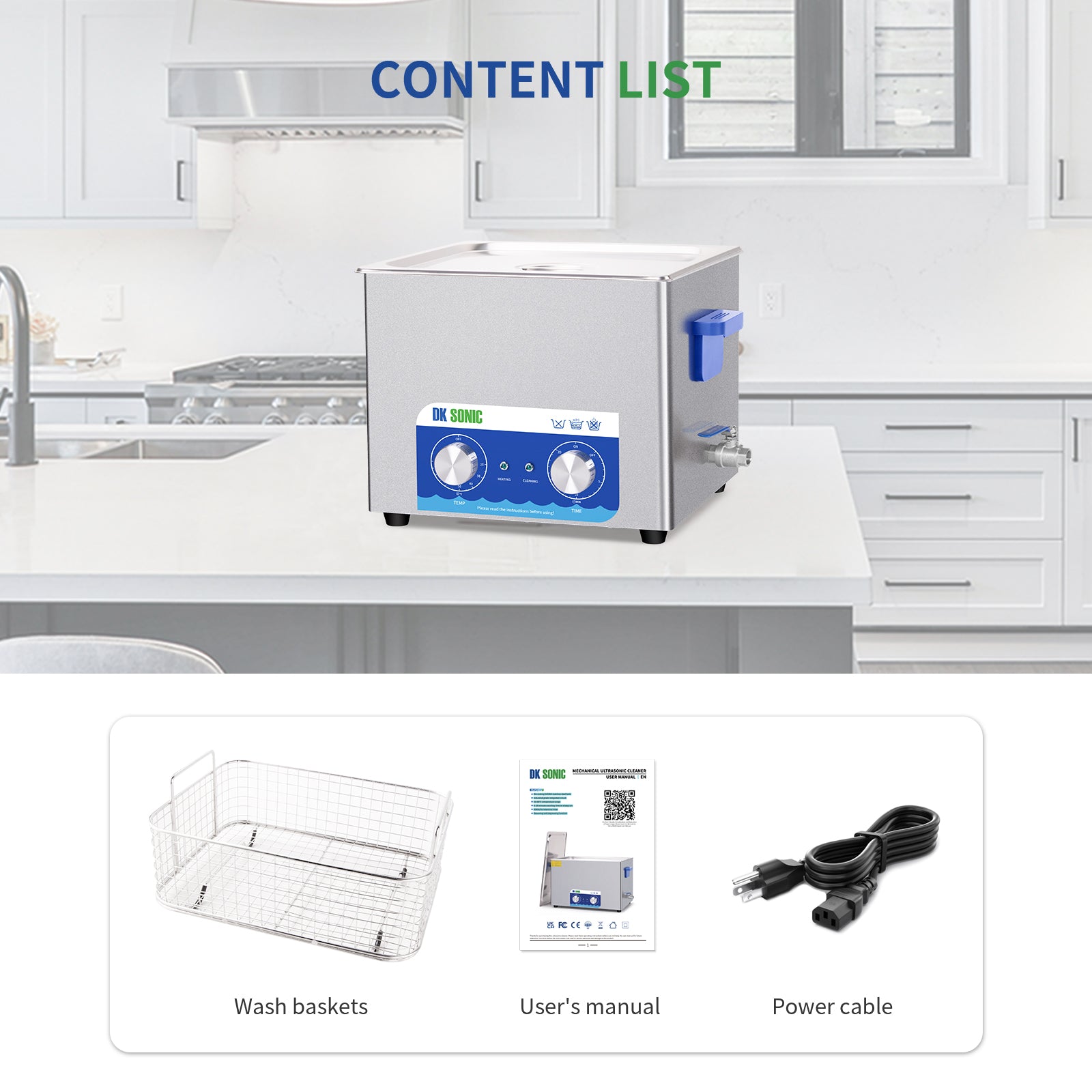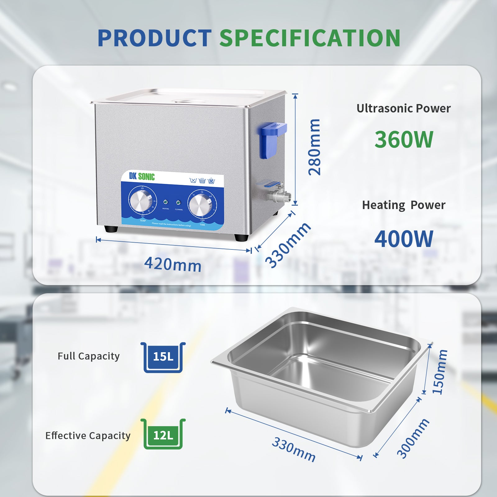 DK SONIC Limpiador Ultrasónico, 15L 480W Limpiador Sónico con Calentador y Temporizador Mecánico, Limpiador Ultrasónico de Carburadores para Limpiar Pistolas, Motores, Cadenas (Cesta Incluida)