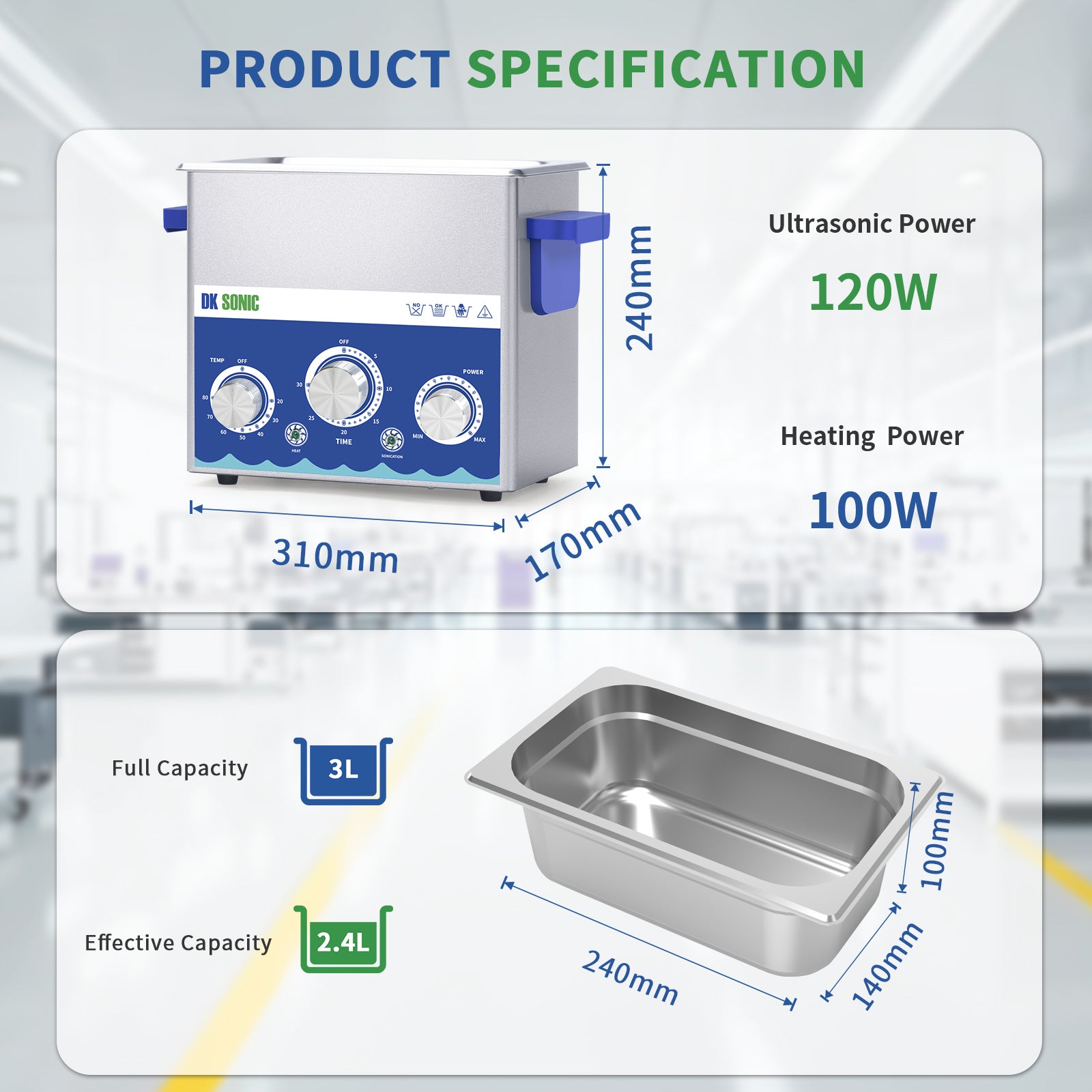 DK SONIC Industrial Ultrasonic Cleaner 3L 120W, Ultrasonic Jewelry Cleaner with Power Adjustable Function, Timer and Heater for Coins, Glasses, Necklaces, Watches Cleaning(Include Basket)