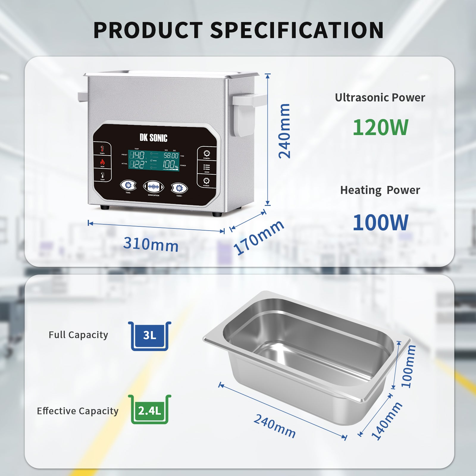 DK SONIC Professional Ultrasonic Cleaner 3L,120W Precision Ultrasonic Jewelry Cleaner with Smart Touch Control, Five Modes for Glasses,Chains,Watches,Coins (Include Basket)