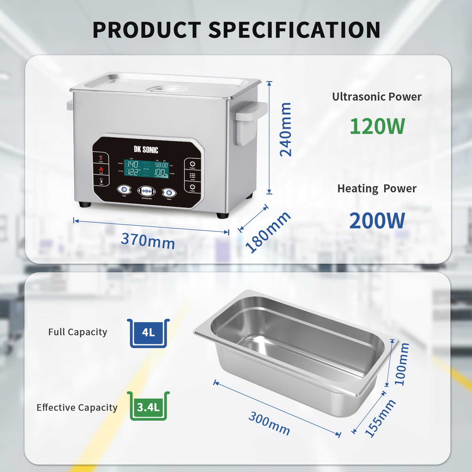 DK SONIC Professional Ultrasonic Cleaner 4L,120W Precision Ultrasonic Jewelry Cleaner with Smart Touch Control, Five Modes for Glasses,Chains,Watches,Coins (Include Basket)
