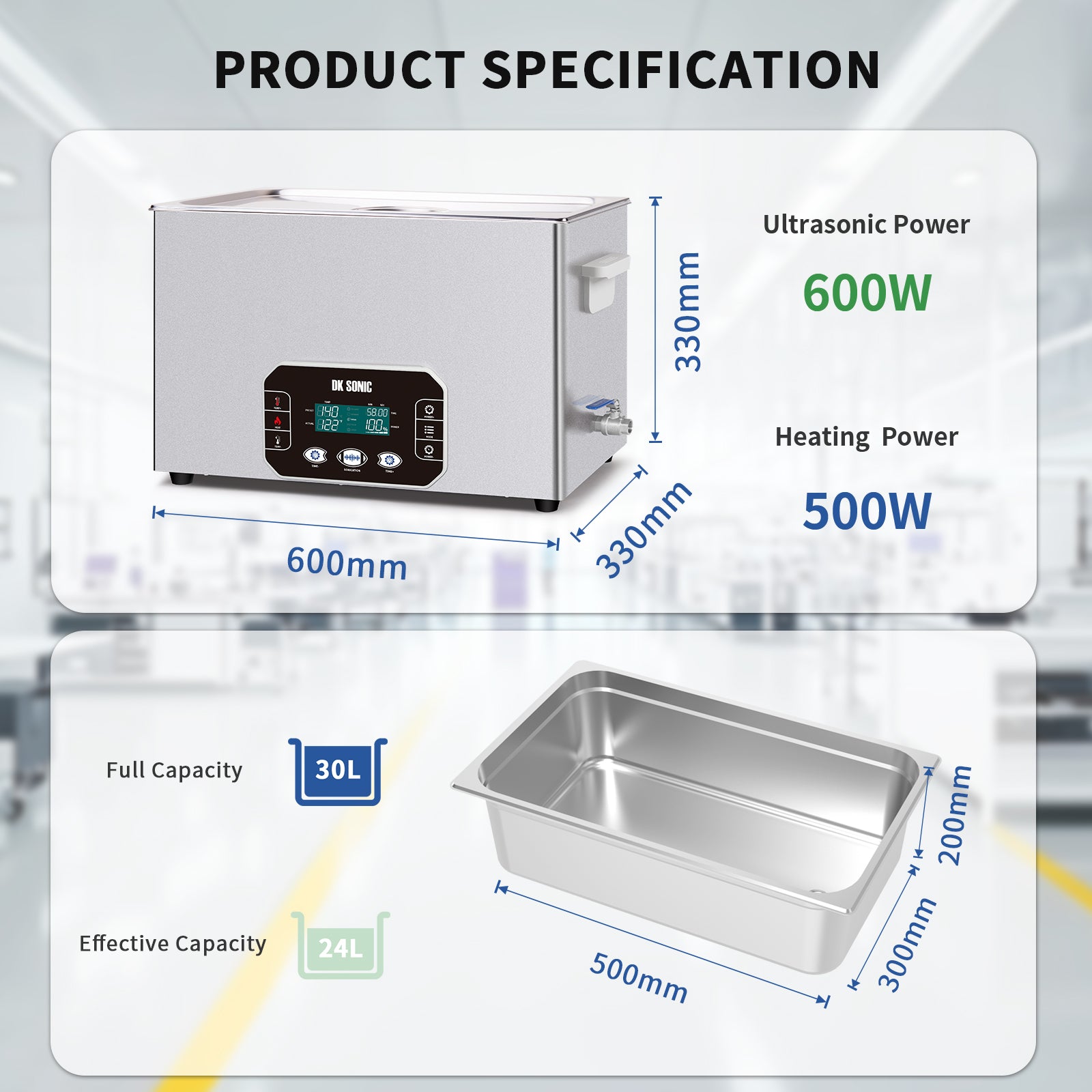 DK SONIC Ultrasonic Cleaner 30L, 600W Heavy-Duty Sonic Cleaner with Smart Touch Control, Five Modes for Motorcycle Engines, Carburetors, Chains,Circuit Board (Include Basket)