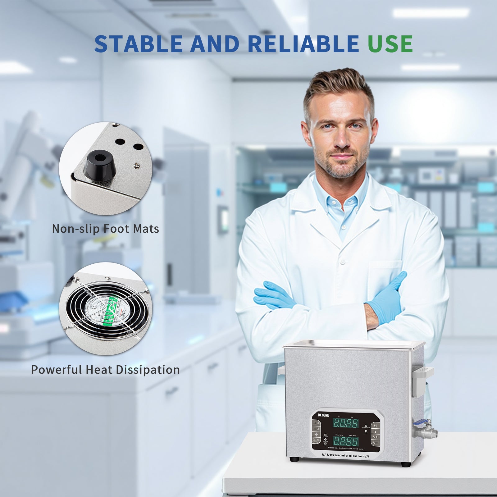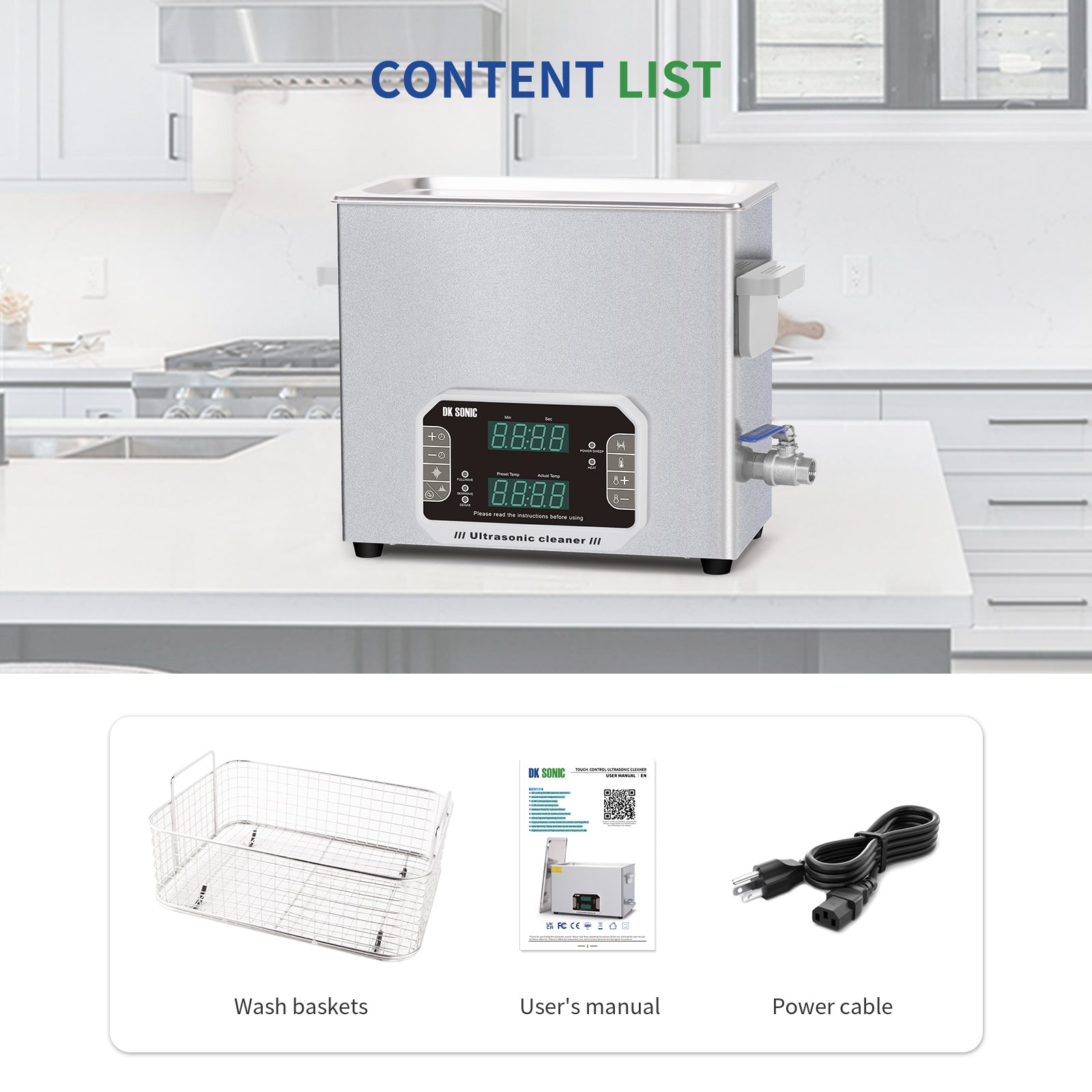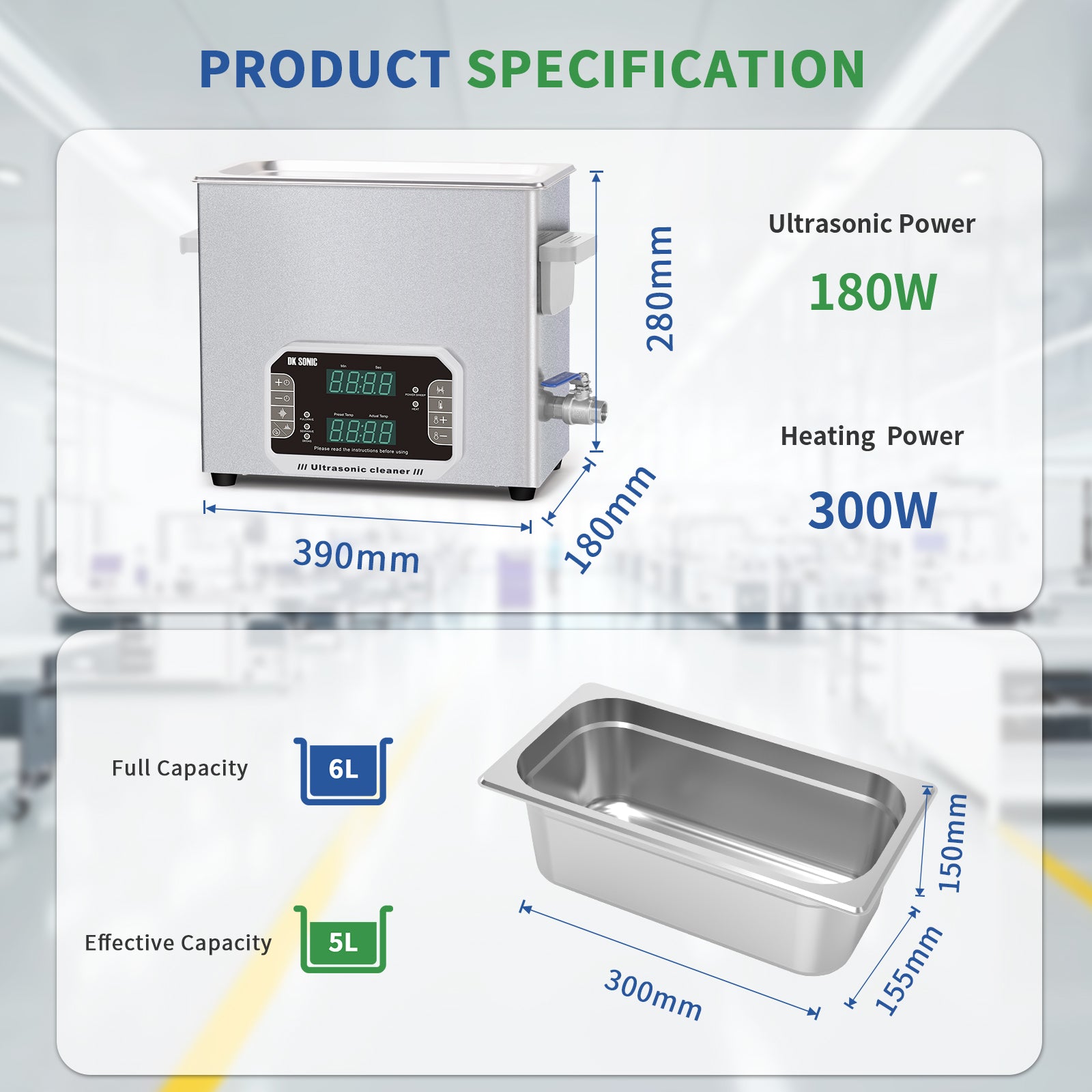 DK SONIC Limpiador Ultrasónico 6L, 180W Limpiador Sónico con Temporizador, Calentador y Control Táctil, Multiaplicación para Motores de Motocicletas, Carburadores, Cadenas (Cesta Incluida)