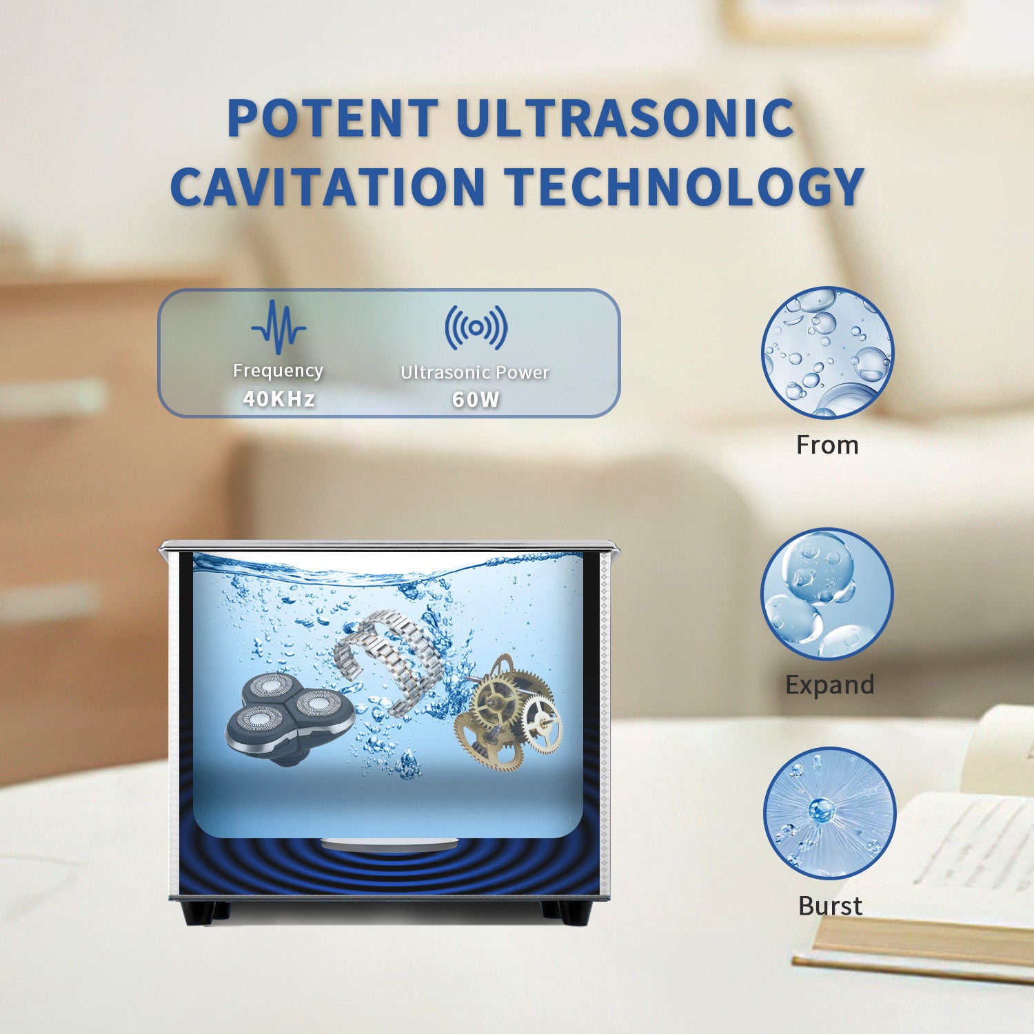 DK SONIC Ultrasonic Cleaner,1.5L 60W Stainless Steel Ultrasonic Jewelry Cleaner with Cleaning Basket,Mechanical Timer,Sonic Cleaner for Cleaning Jewelry,Eyeglasses,Coins